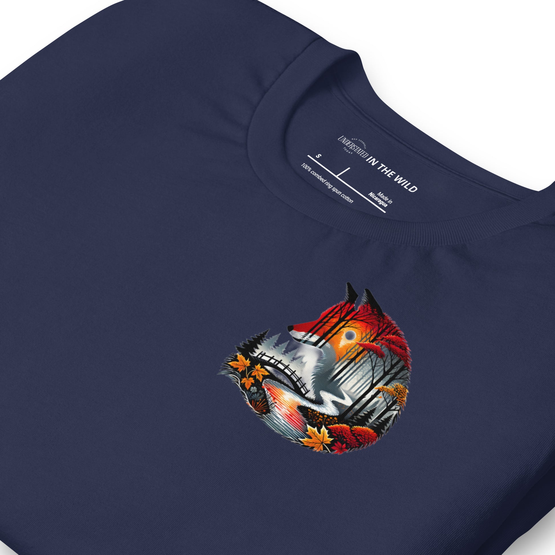 Wander into autumn with this enchanting fox silhouette, featuring a scenic forest, glowing river path, and vibrant fall leaves. Perfect for nature enthusiasts, this tee radiates cozy autumn vibes and captures the beauty of the changing seasons.