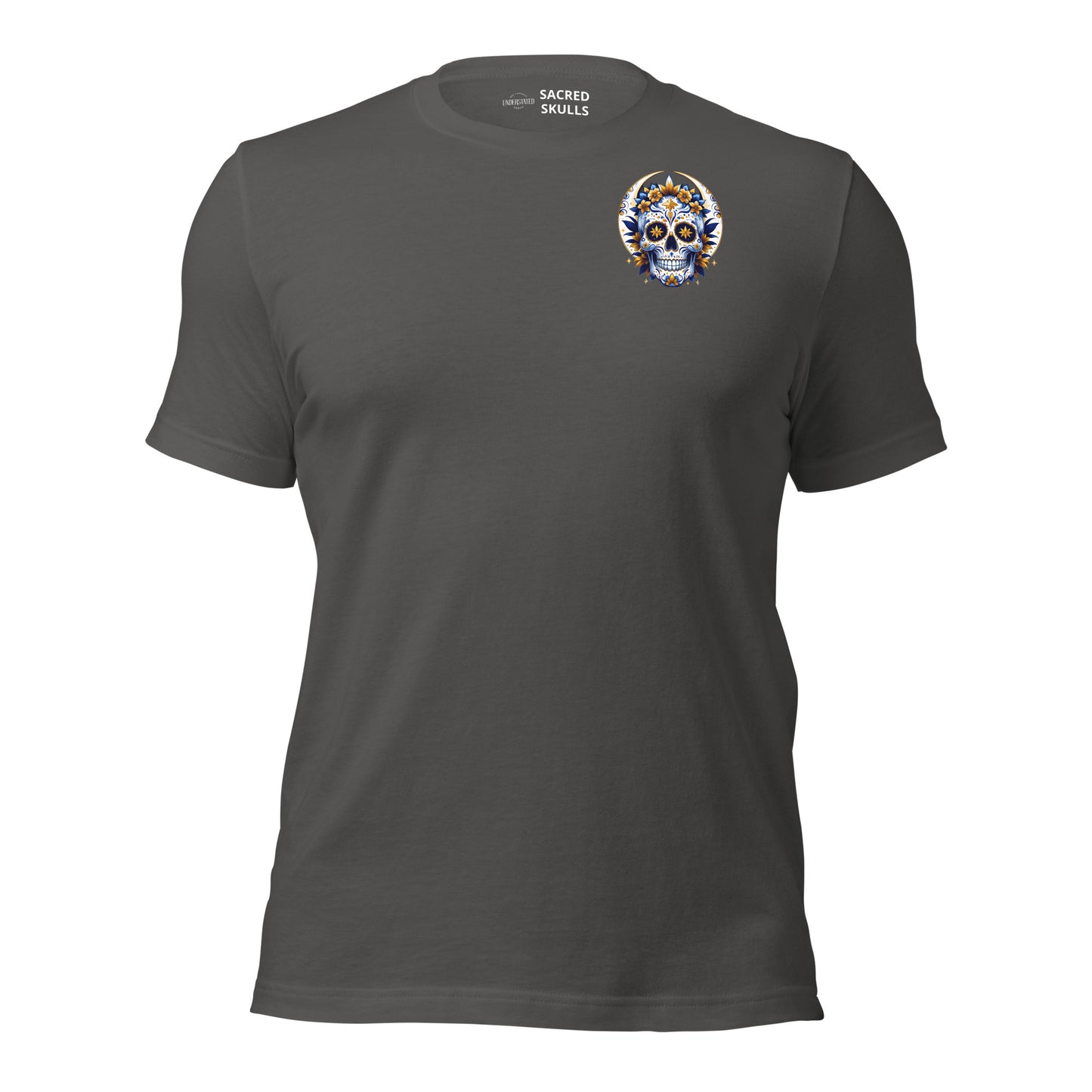 Shine bright with this celestial sugar skull featuring stars, gold accents, and intricate floral patterns. A wearable masterpiece that blends mystery and glamour.