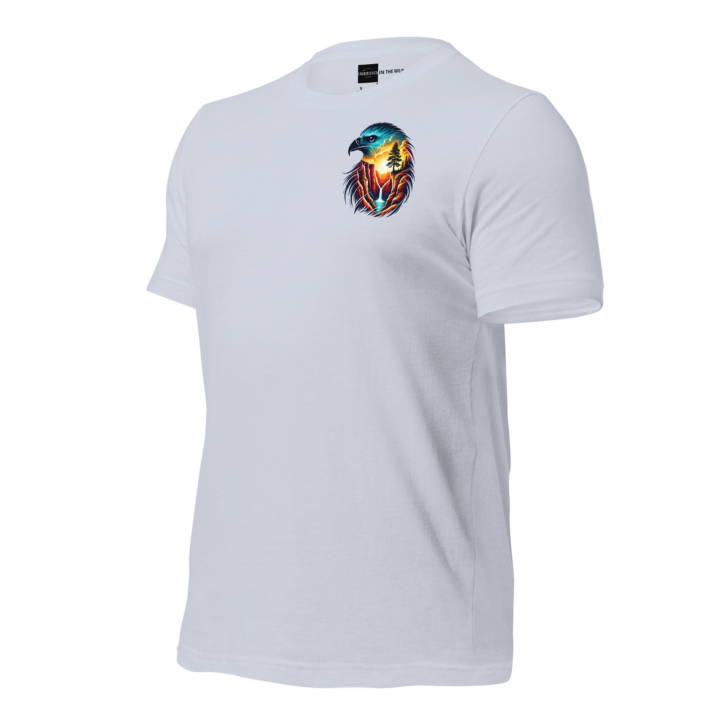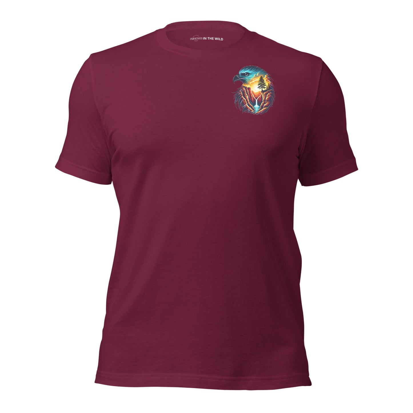 Experience the grandeur of nature with this captivating eagle silhouette showcasing a sunlit canyon, waterfall, and forest. Ideal for nature lovers and outdoor adventurers, this tee embodies freedom, strength, and the beauty of the wild.